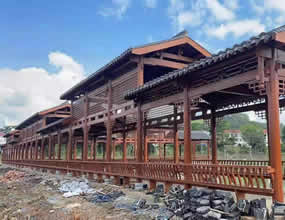 這個(gè)項(xiàng)目是湖北黃崗市的一個(gè)村里,定制的是一套古建小青瓦防腐木長廊,尺寸是長度11米,寬度為2.8米,總面積為30個(gè)平方米左右。陳總在網(wǎng)上找到我們